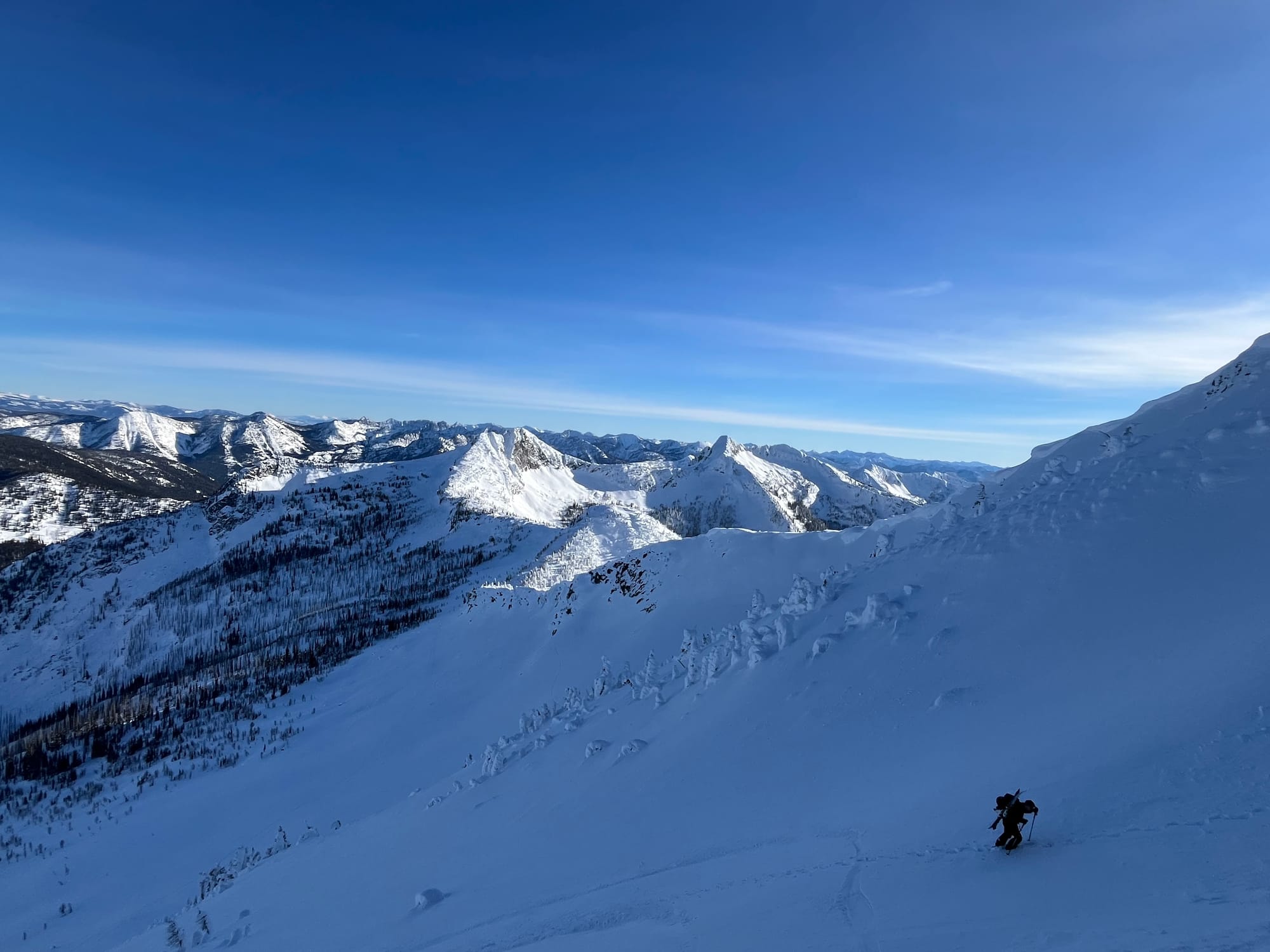 The dominant ridge of high pressure off the west coast has been a persistent one and will continue for the remainder of the week. It settled in in early January around the tenth and has remained in place since the. The Central Selkirks around Rogers Pass have faired a bit better than the Southern Selkirks with a few small refreshes over the past few weeks, while the Kootenays have received minimal snowfall since Jan 10. That is not so say the conditions are terrible, rather the ski quality has been excellent in the right places. Lot's of hallmark lines have been skied lately in prime condition. Sheltered features in the alpine and at tree line and below are skiing really well too. It's been a great time to explore and check out places a bit further afield or go ice climbing.